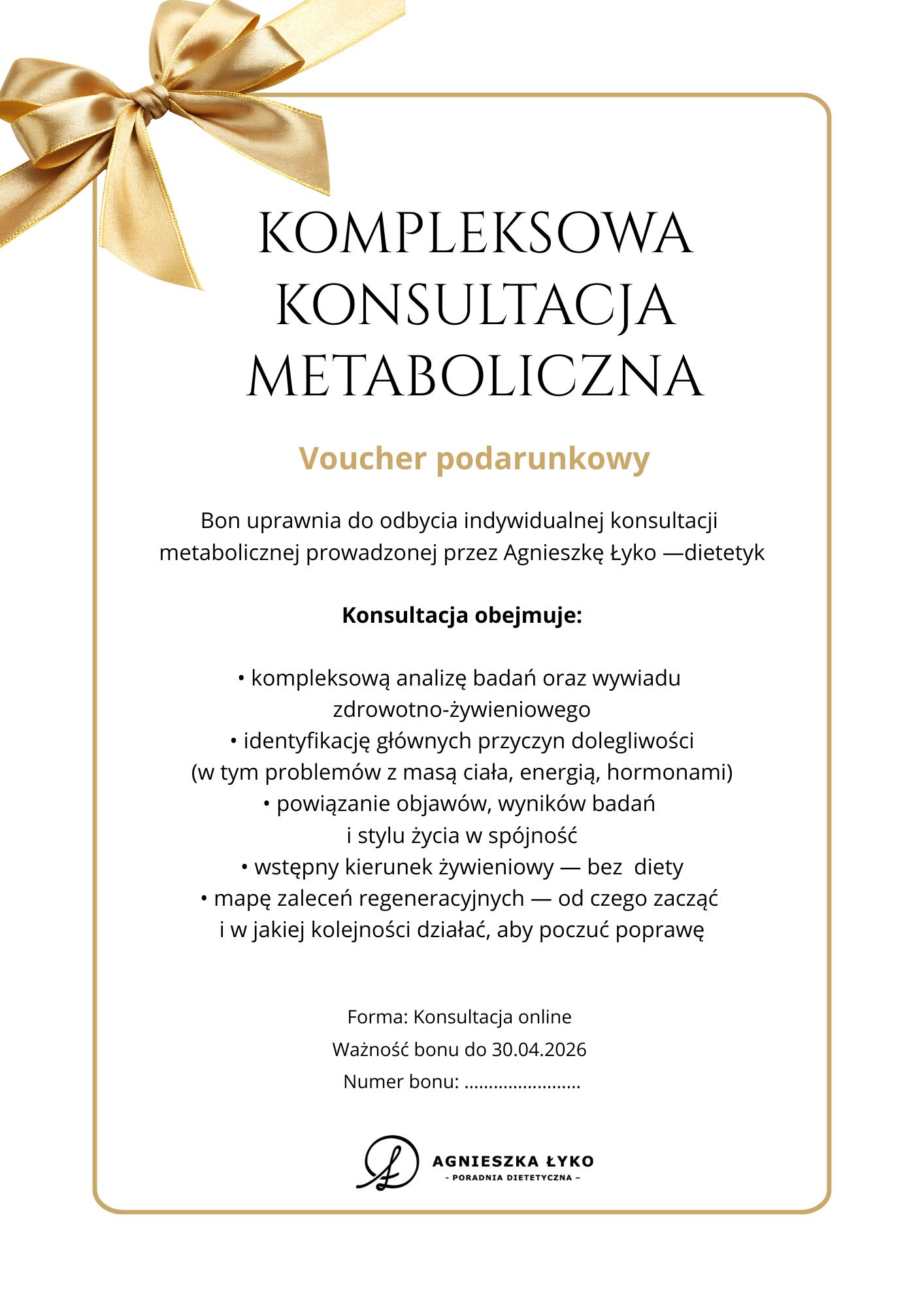 Bon podarunkowy – Kompleksowa Konsultacja Metaboliczna